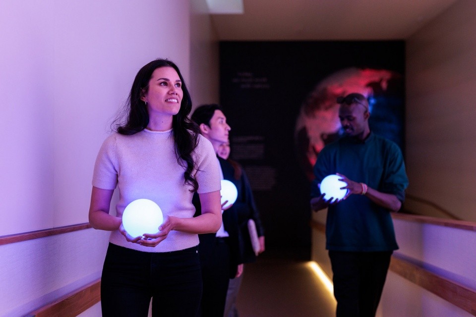 ▼a small glowing orb that interacts with the installations placed throughout the space ©Tellart