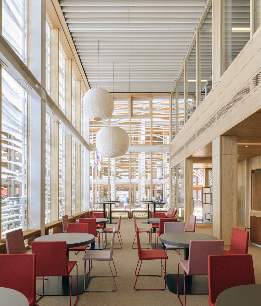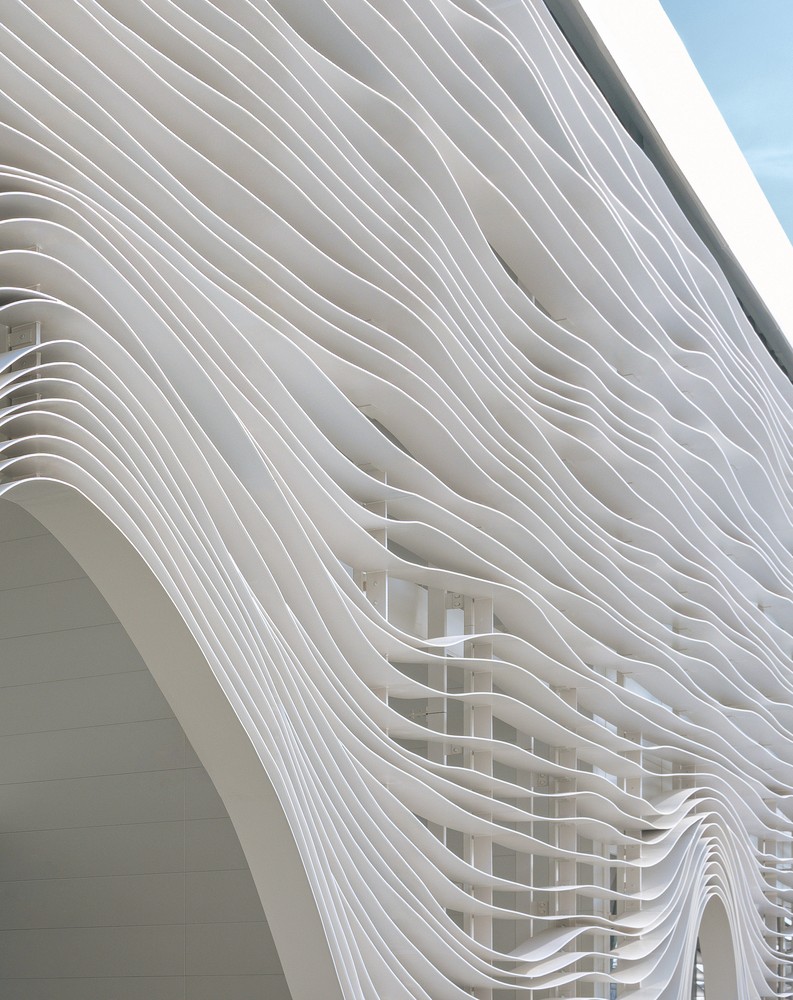 The pavilion consists of two volumes: the event space on one side, and the experience, shop and café on the other, that together support the sphere and the roof. This refers to the “common ground” concept of the pavilion.